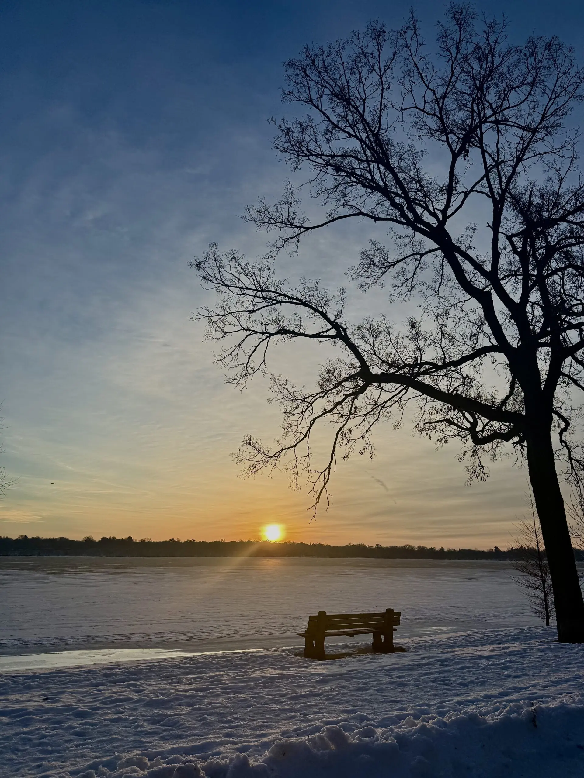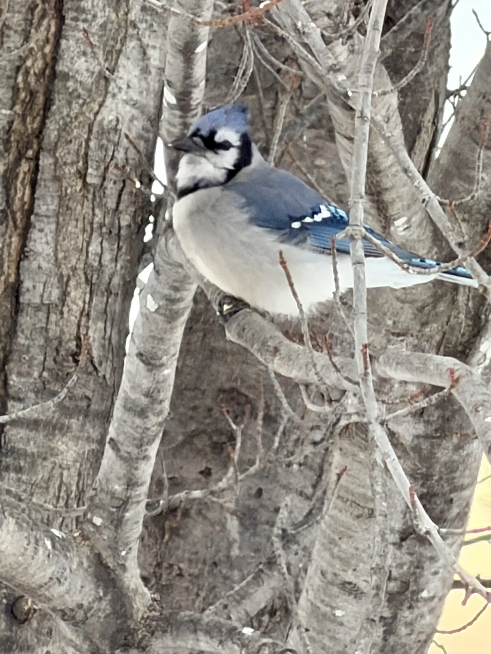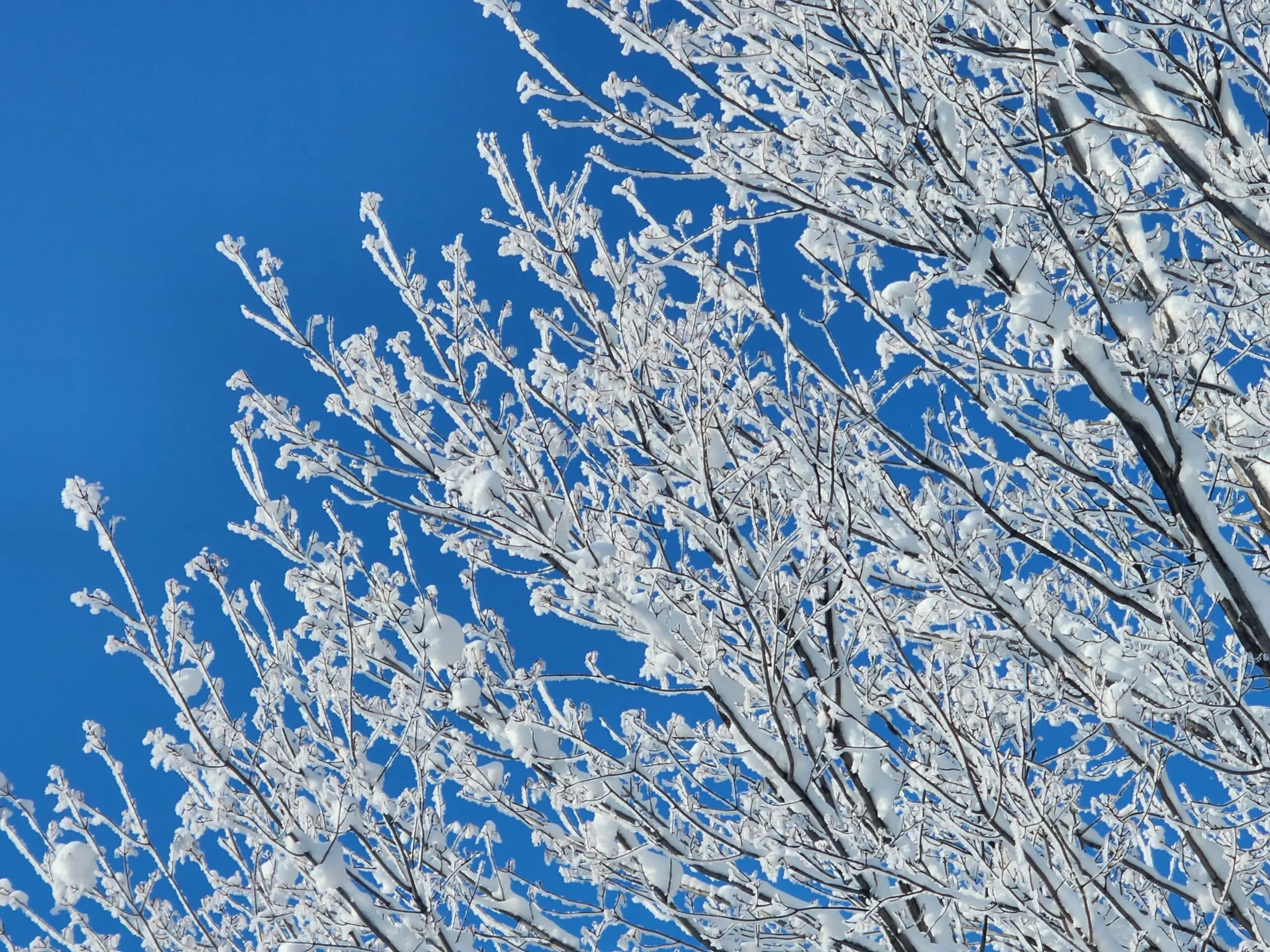 Fresh snow rests on our maple’s bare branches, catching the light against a clear blue winter sky. One of those moments when everything briefly stands still.