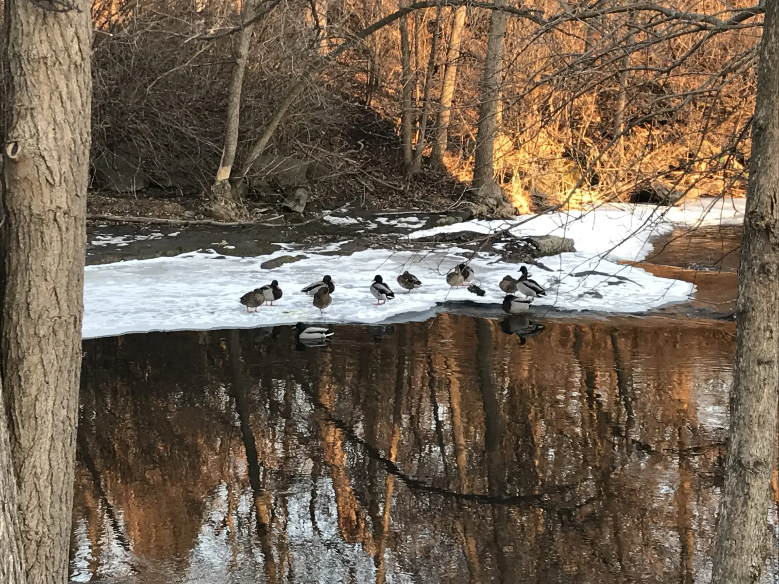 I had a peaceful walk at the Riverbend Nature Center In Faribault. These ducks were enjoying a snowy respite along the riverbank.