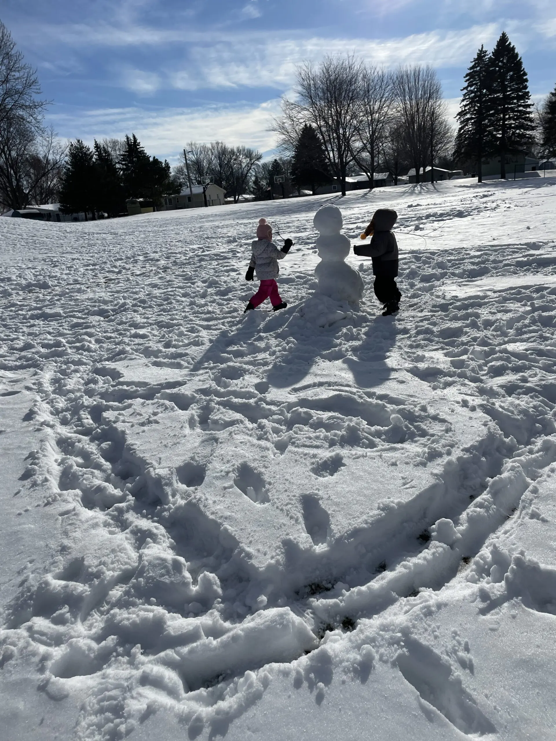 My toddler and his friend building a snowman. The pure simple joys of winter and snow.