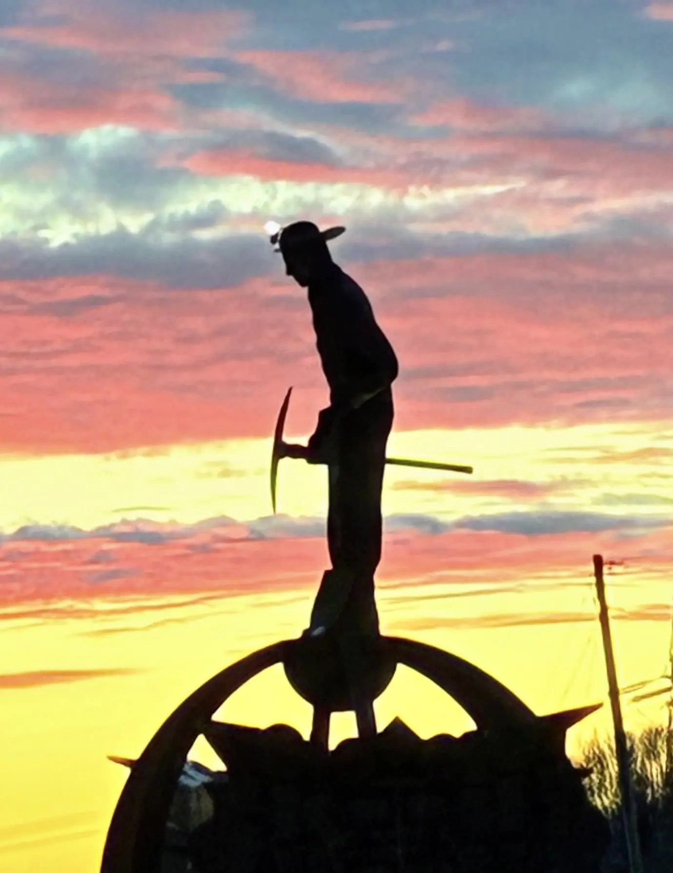 Iron Man Statue in Chisholm, Mn with a beautiful sky in the afternoon.